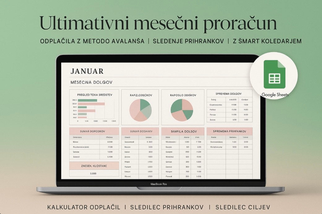 Preglednica za celotno leto z mesečnim proračunom. Vsako leto lahko spreminjate in prilagajate svojim potrebam.